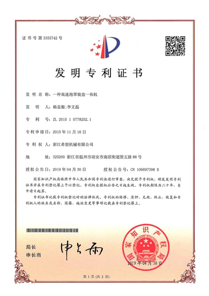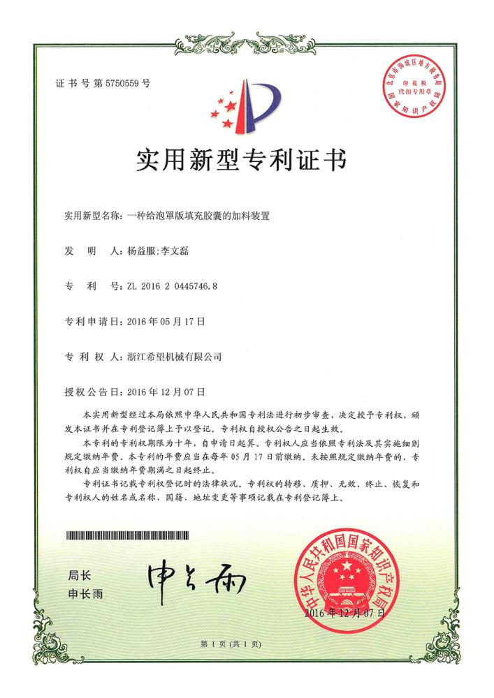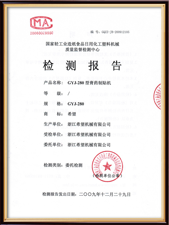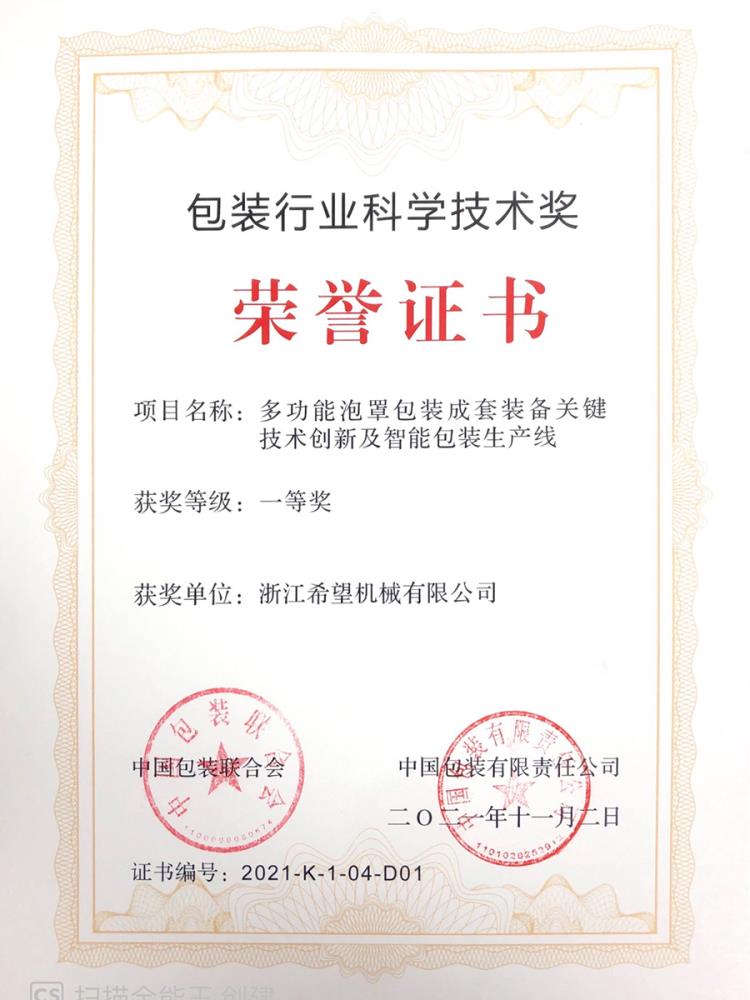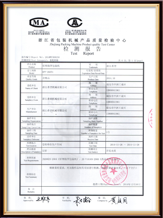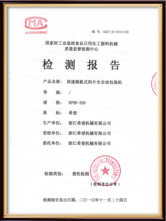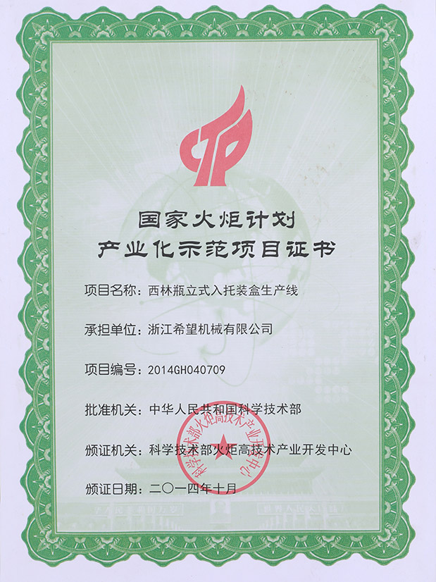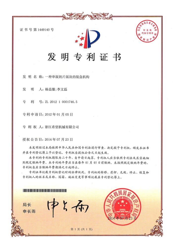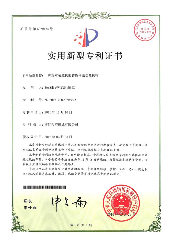 2016年“DHL600高速泡罩装盒一体机”获浙江省首台套产品荣誉称号。