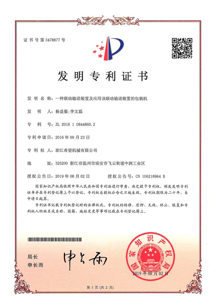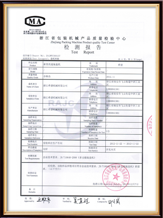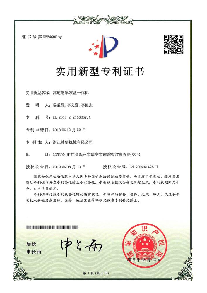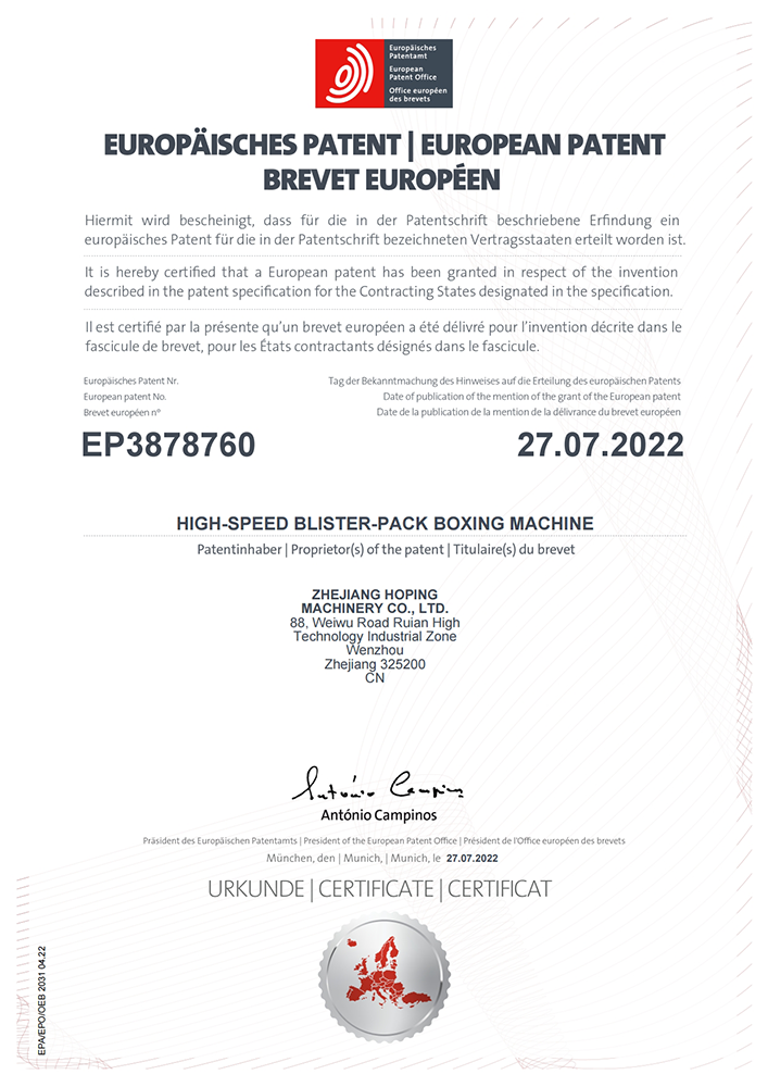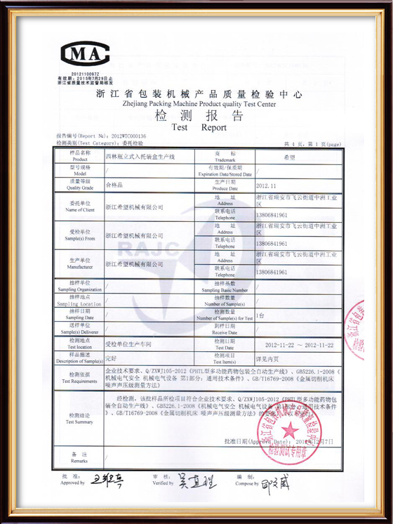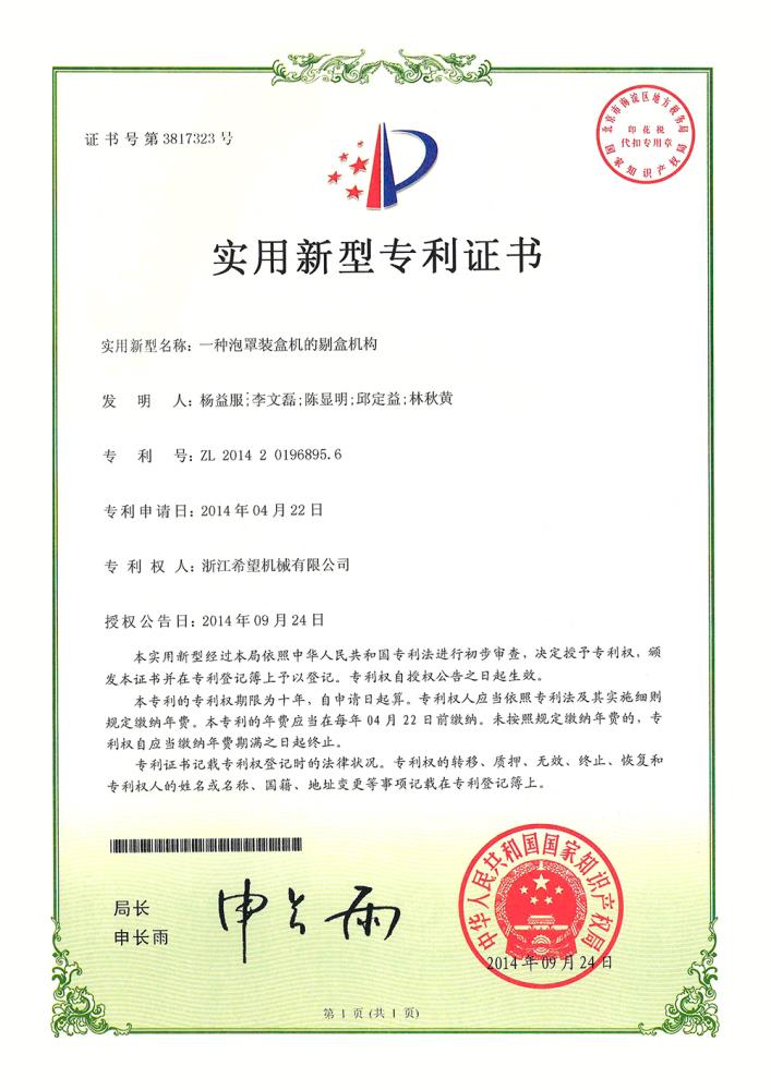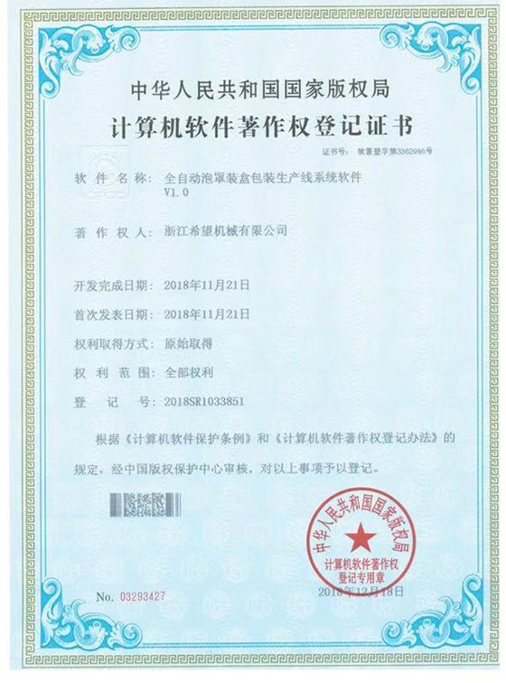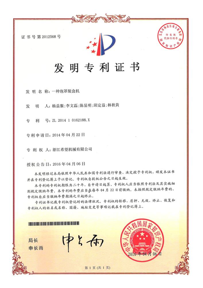 2016年“DHL600高速泡罩装盒一体机”获浙江省首台套产品荣誉称号。