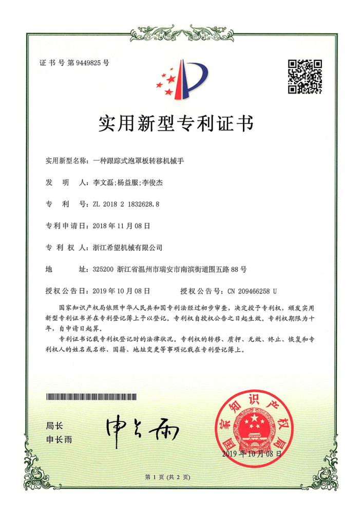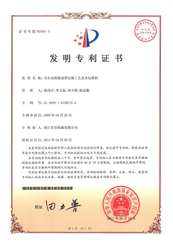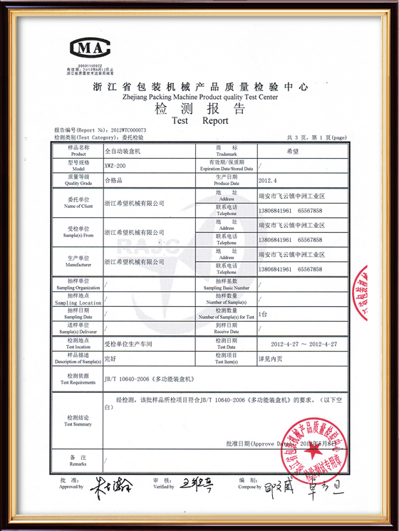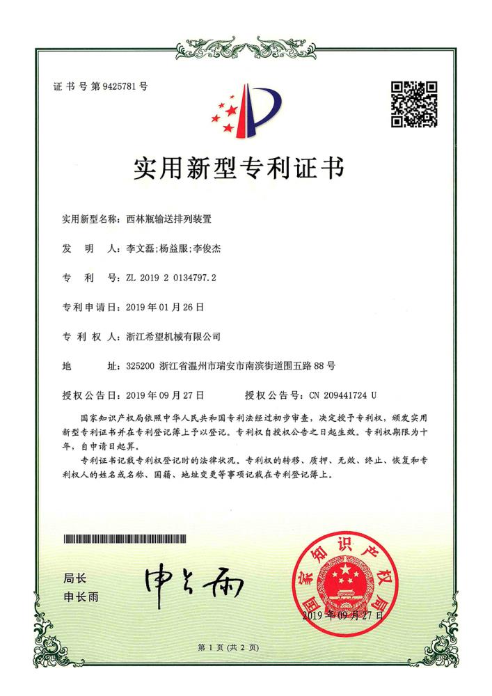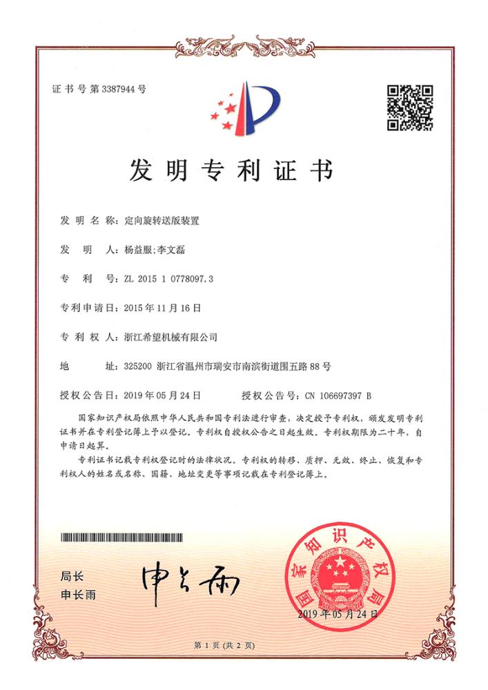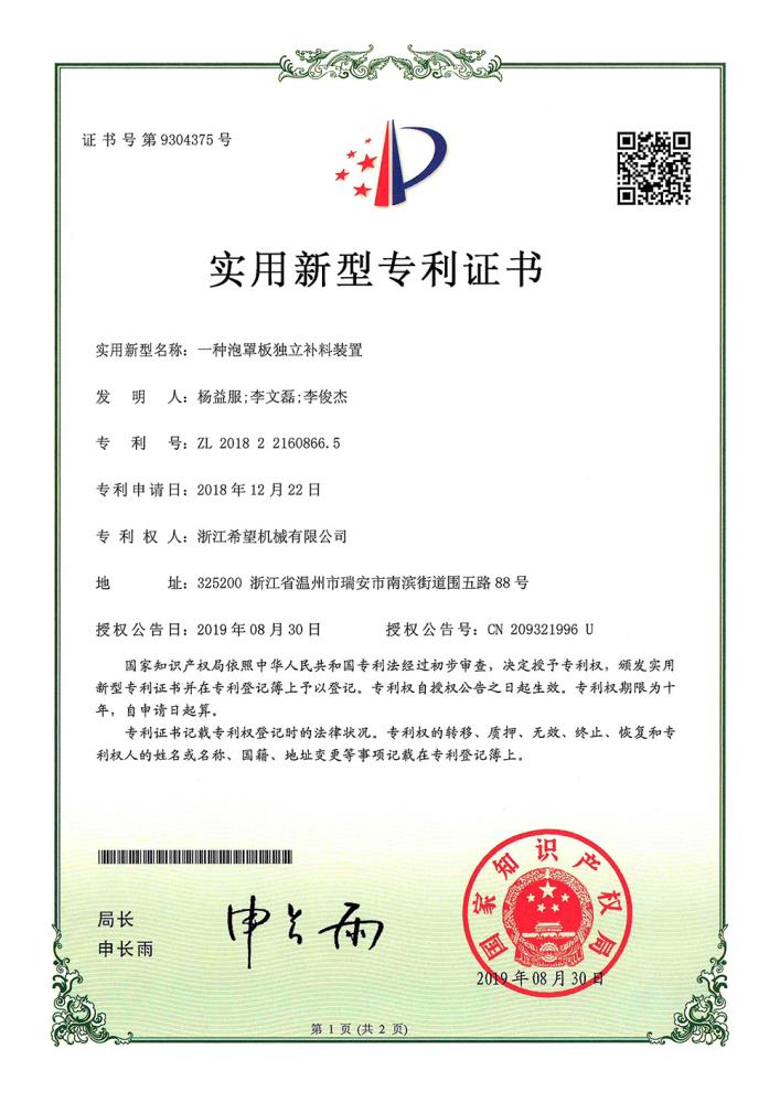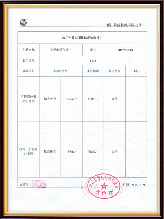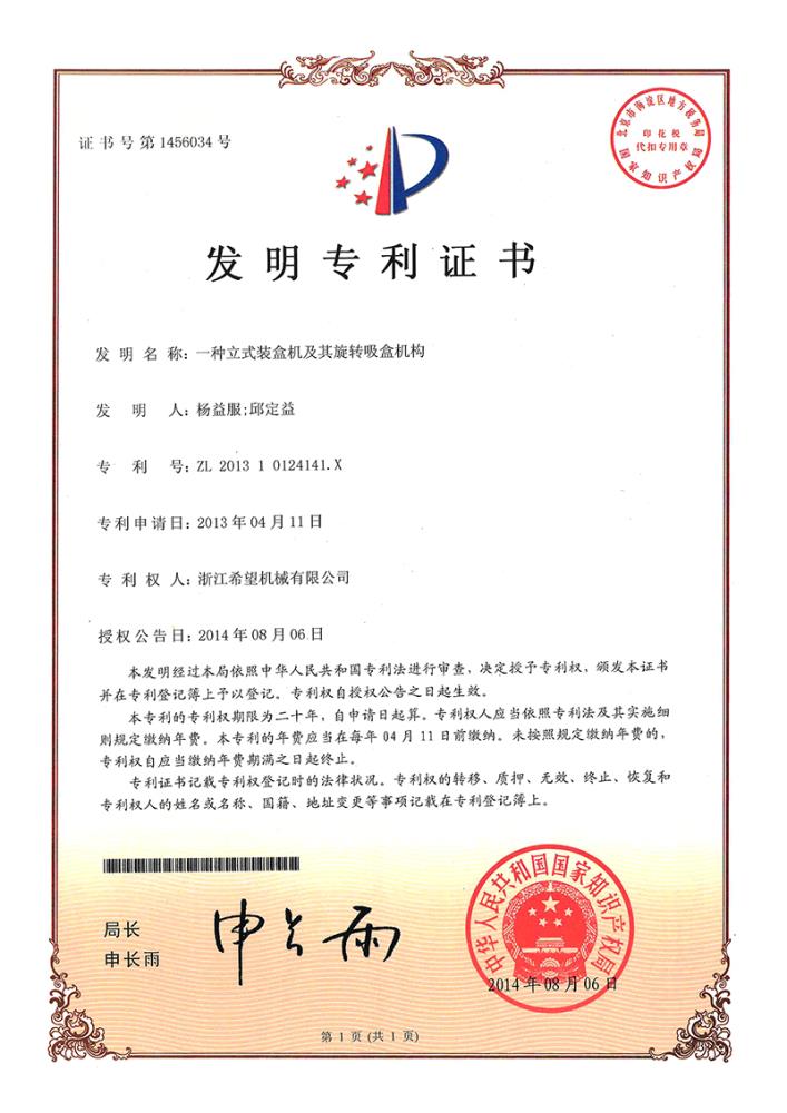 2016年“DHL600高速泡罩装盒一体机”获浙江省首台套产品荣誉称号。
