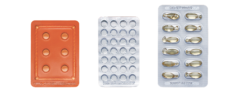 | 卷型包装材料 | PVC/PVDC/PET/PE/ACLAK | 单面涂胶铝箔(PTP)背封材料 |